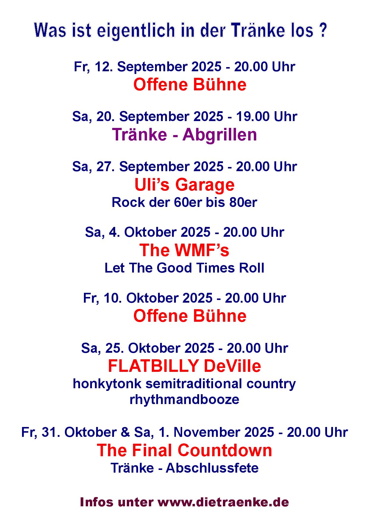 Hier gibt es nun wieder aktuelle Informationen rund um die Tränke und unseren Veranstaltungen.